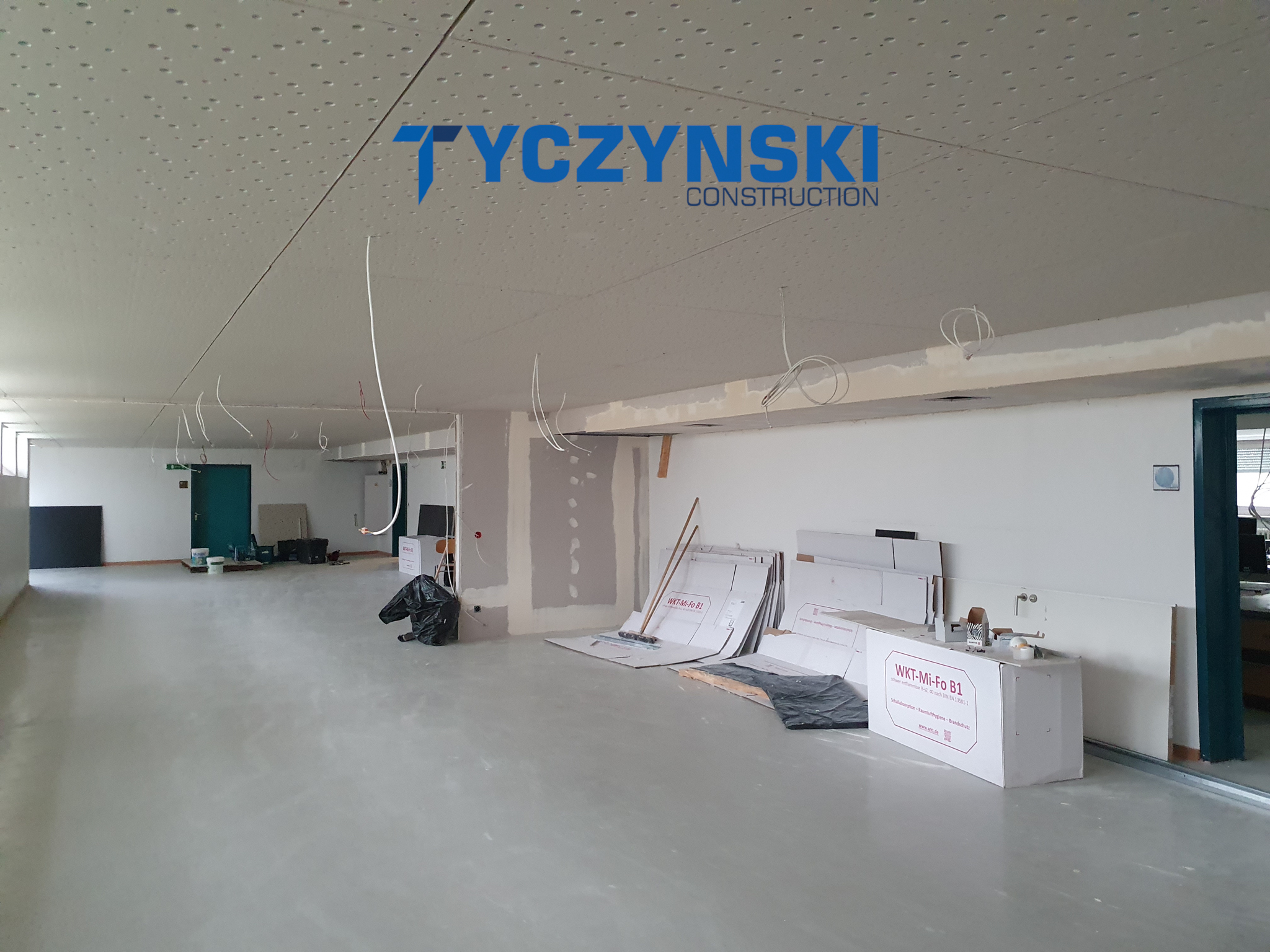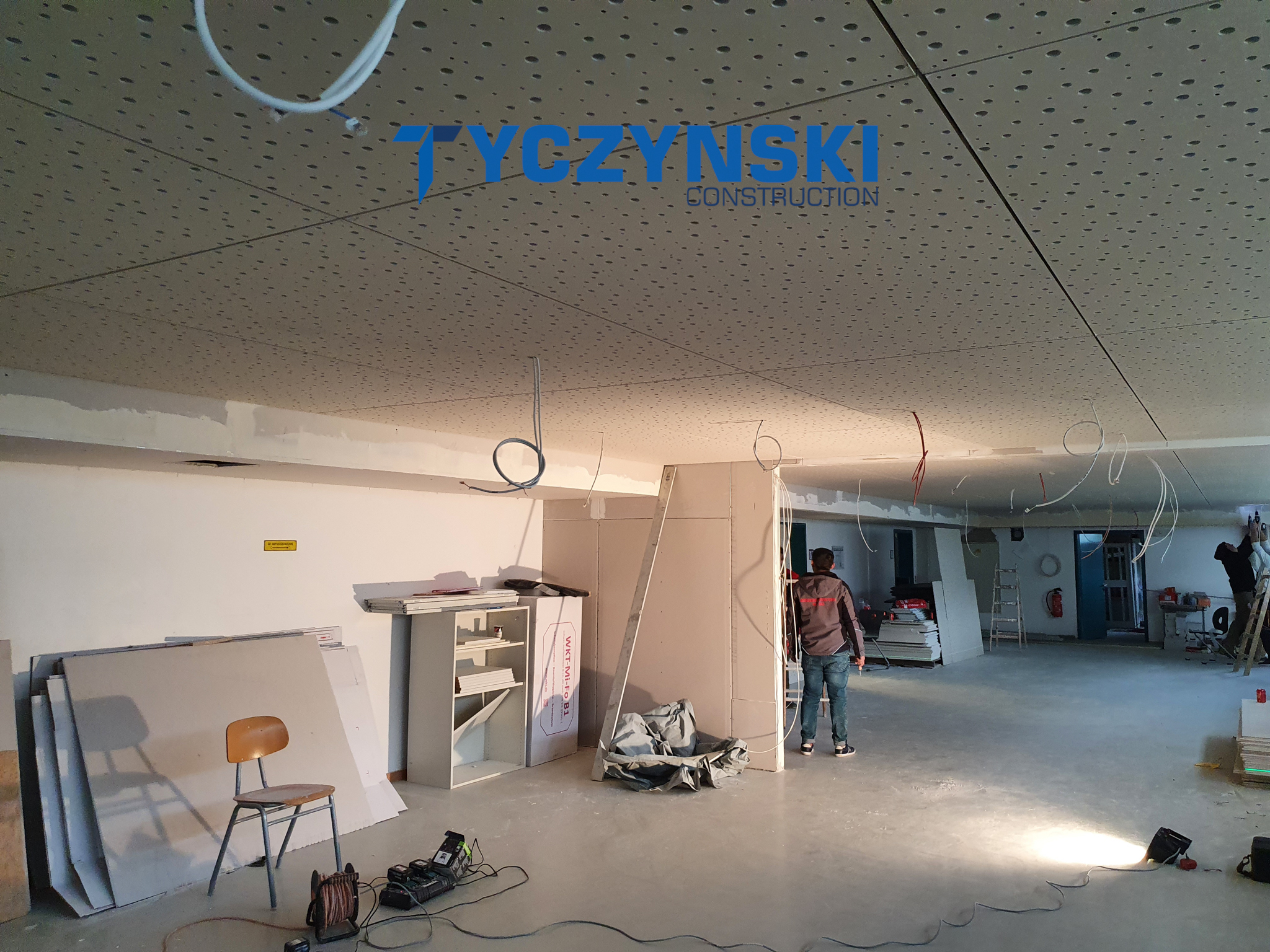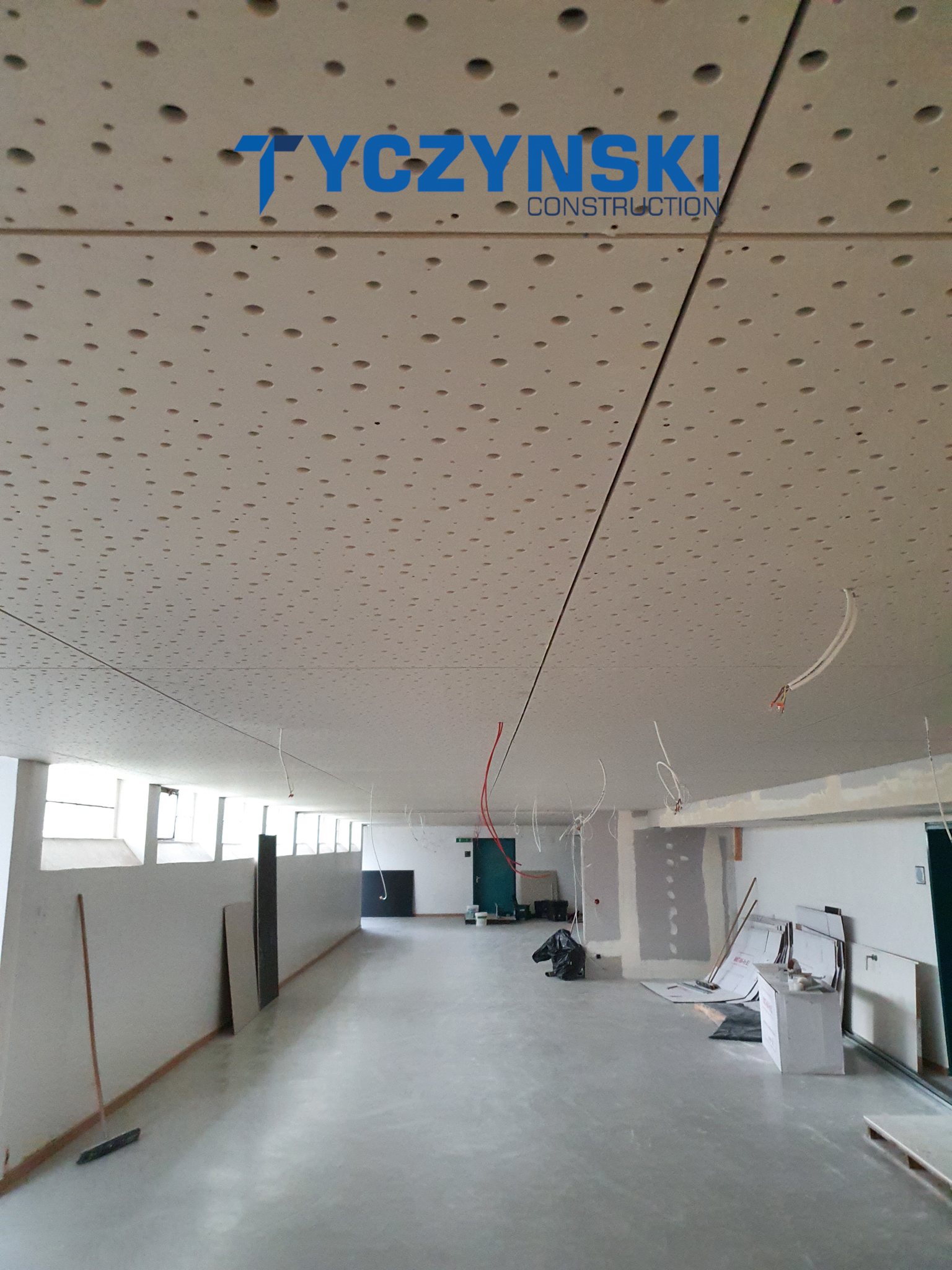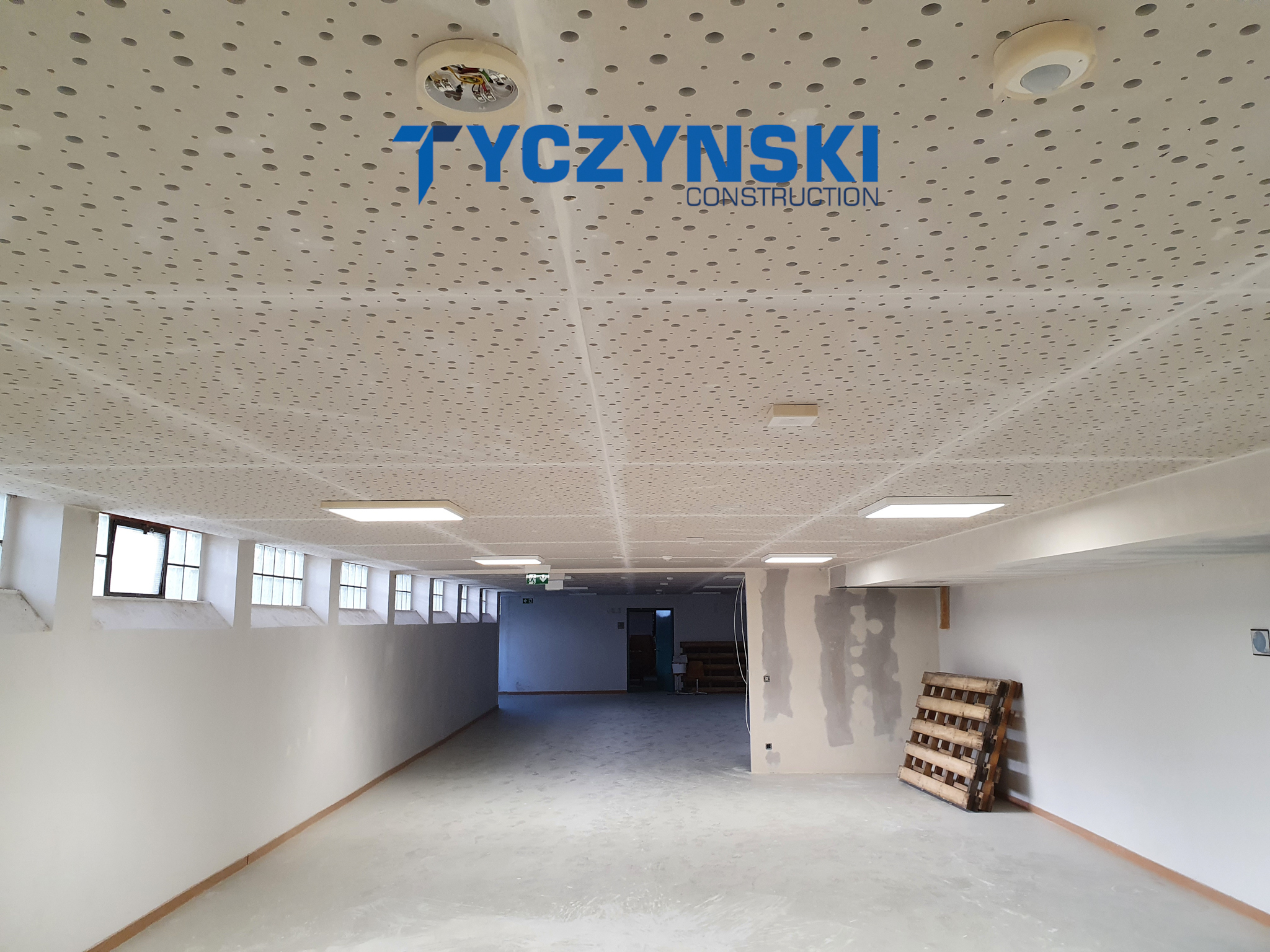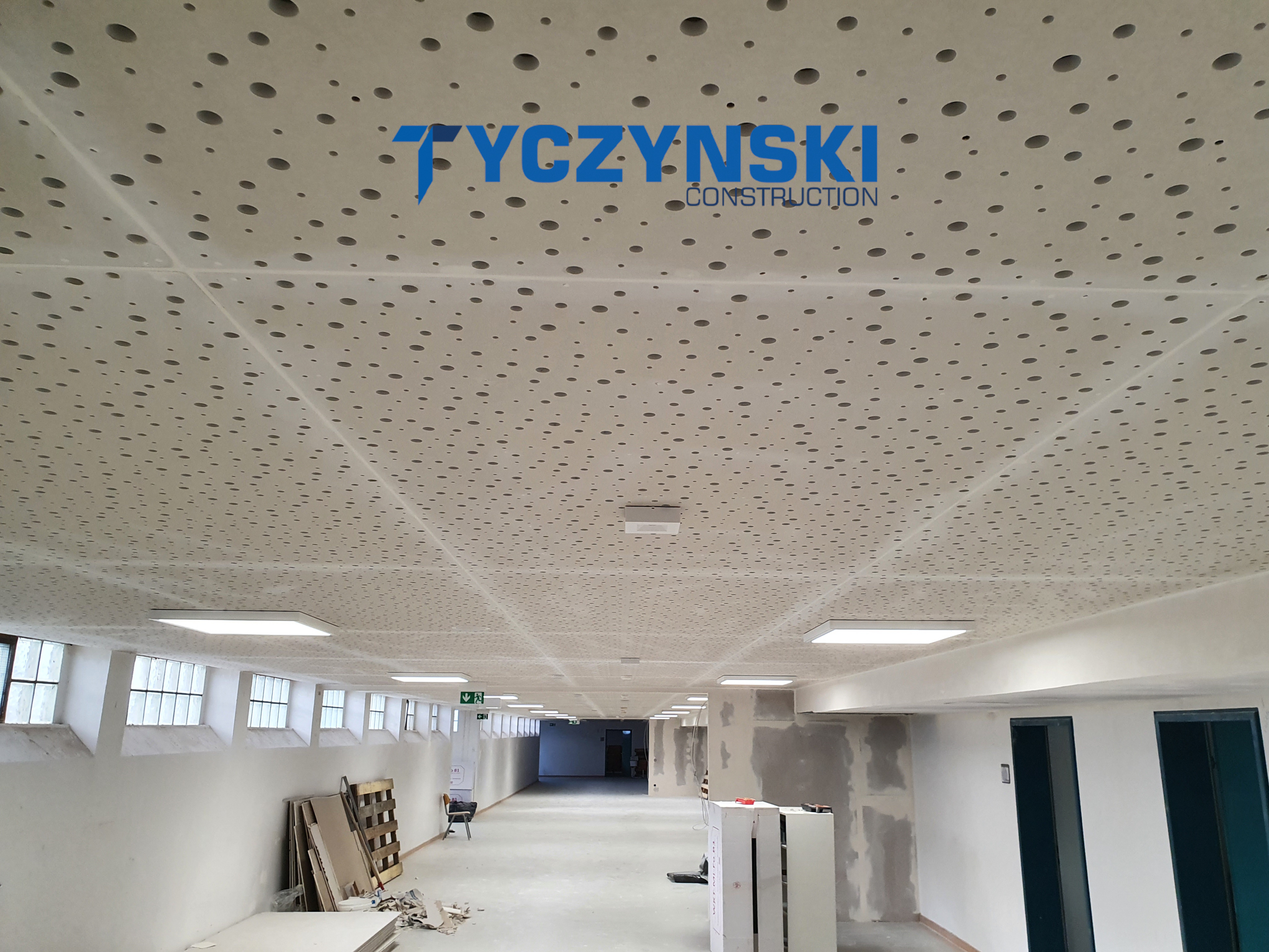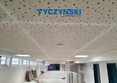 Erster Bauabschnitt in der Europäische Schule ist schon fertig. Wir haben gemacht eine sehr schöne Decke. Haardesign Platte mit Unterkonstruktion und Schalldämmung.