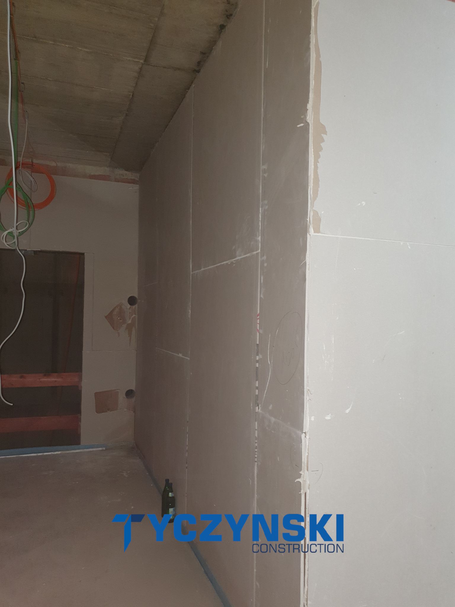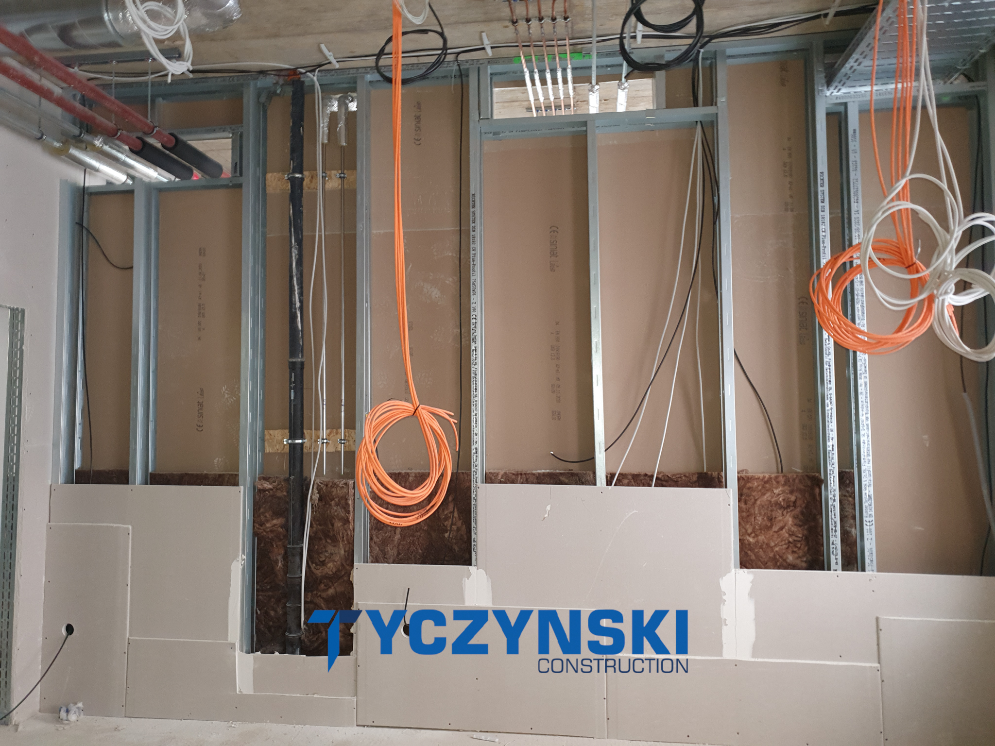 Hier haben wir verschiedene Arten von Trockenbauwänden. Wände in feuchteren Räumen aus GKBI, feuerfeste Wände, traditionelle GKB-Wände, Installationswände und Vorsatzschalen.