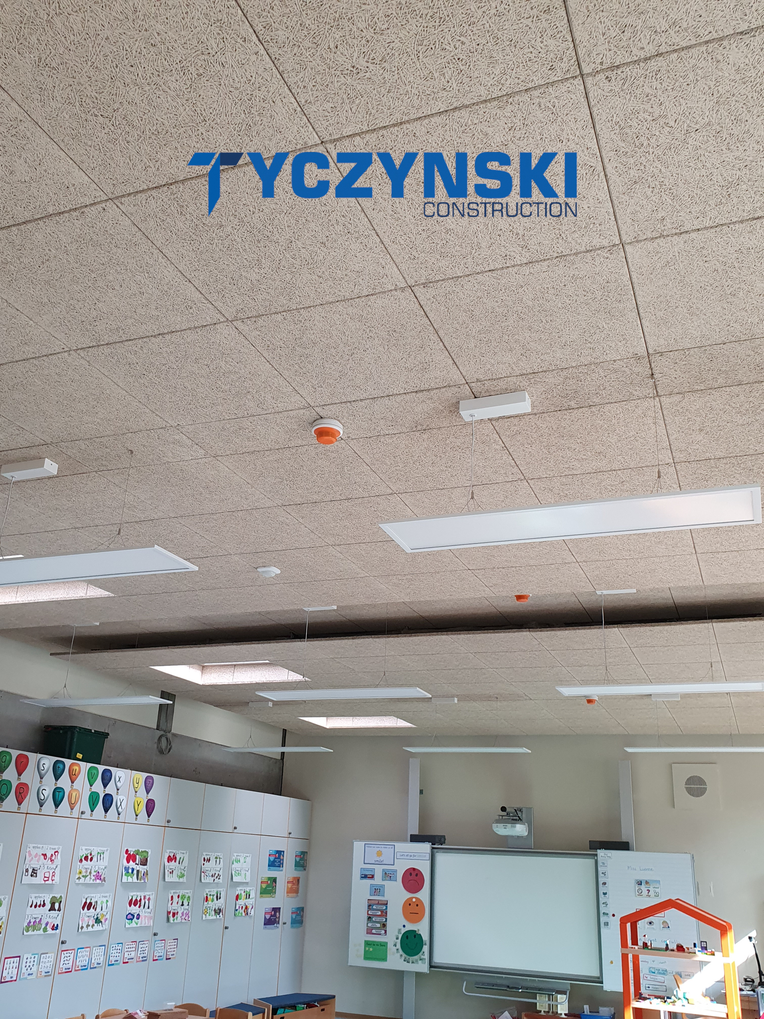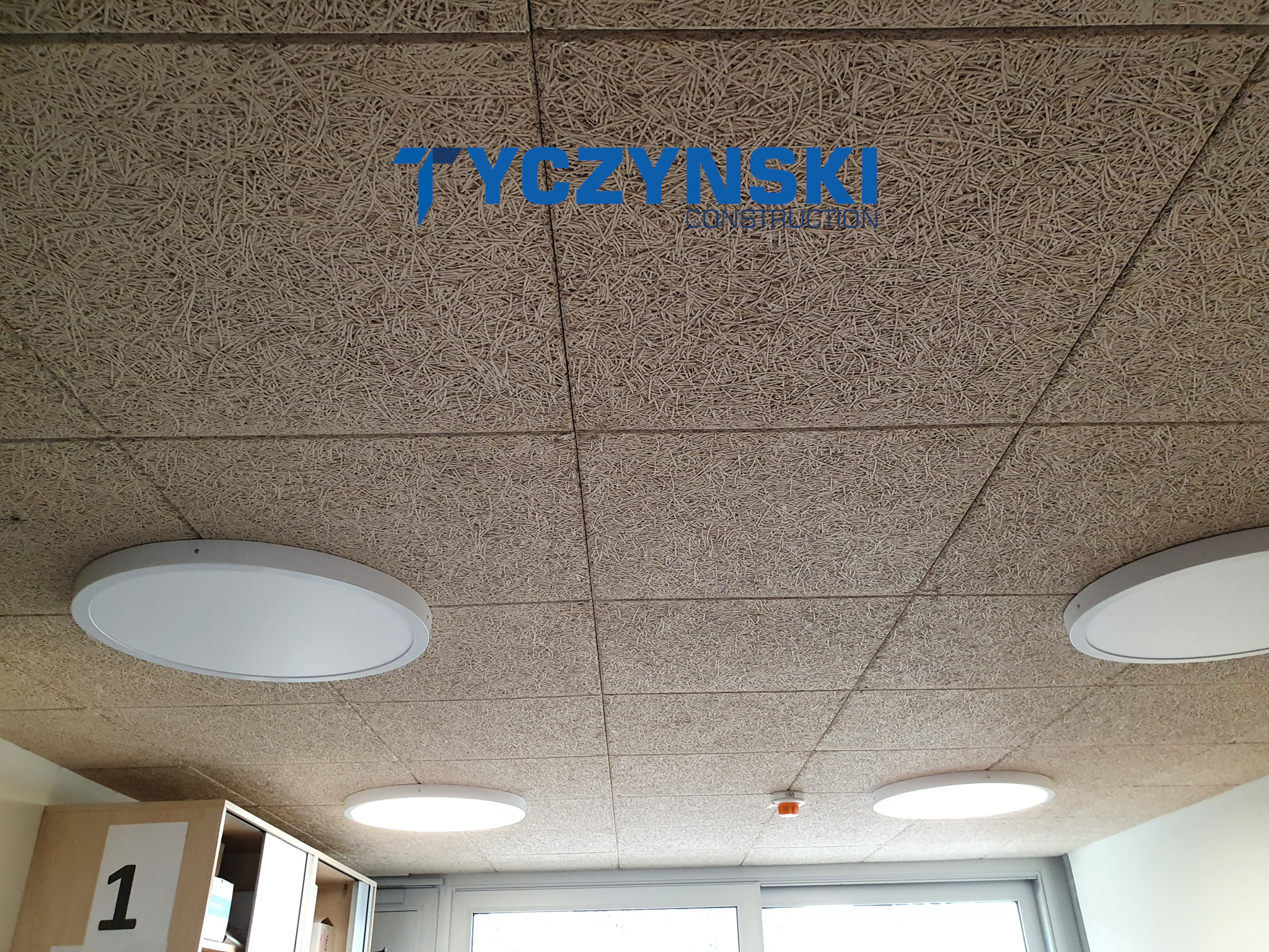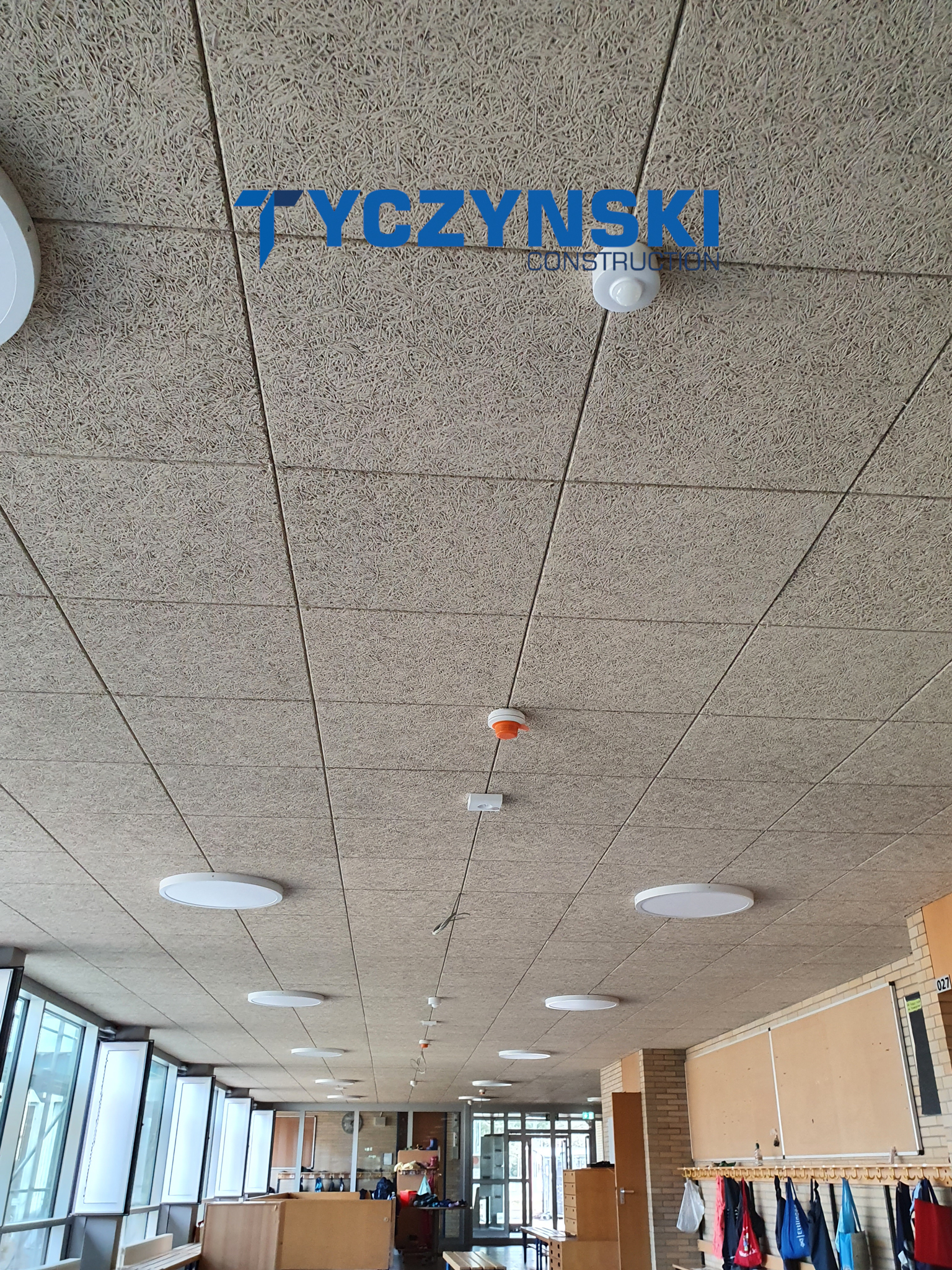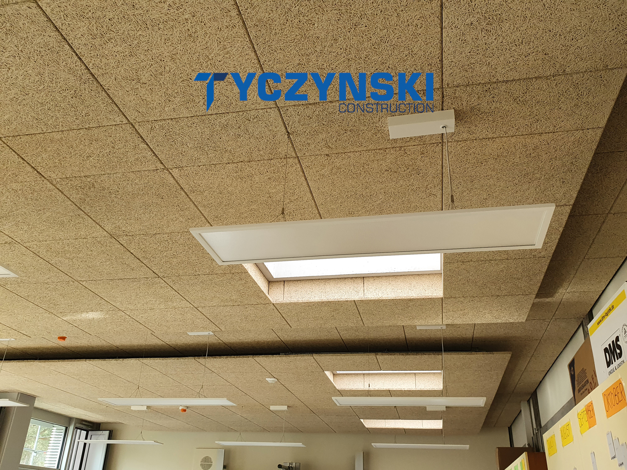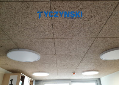 Erster Bauabschnitt in der Europäische Schule ist schon fertig. Wir haben gemacht eine sehr schöne Decke. Haardesign Platte mit Unterkonstruktion und Schalldämmung.