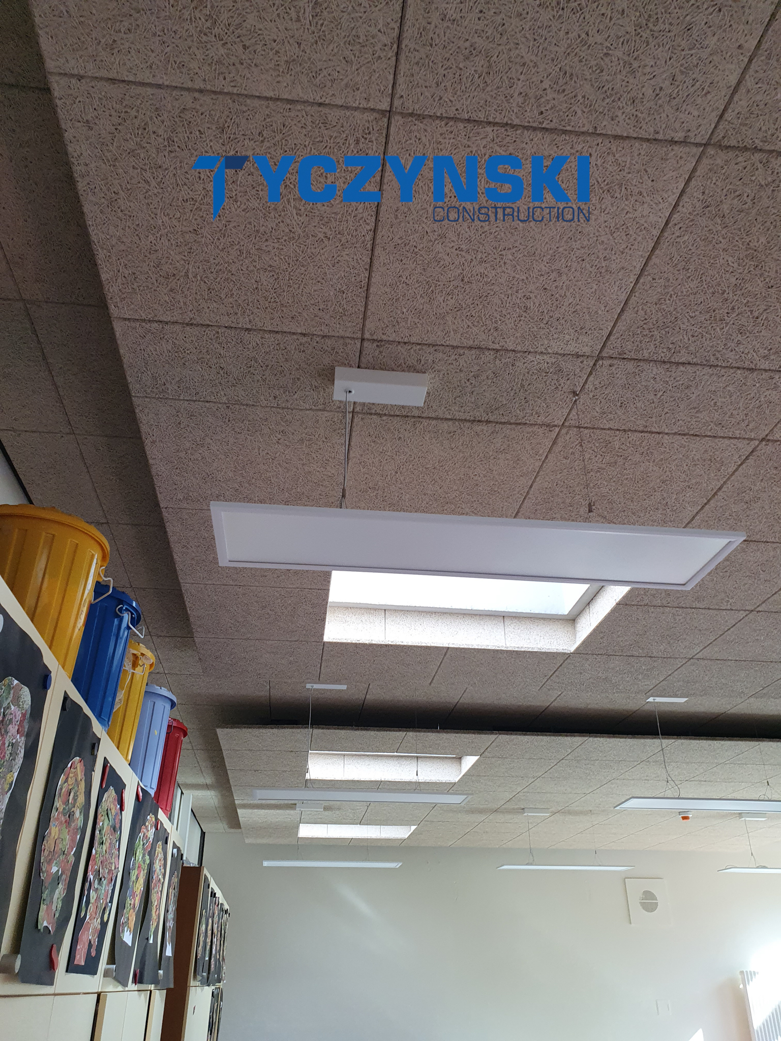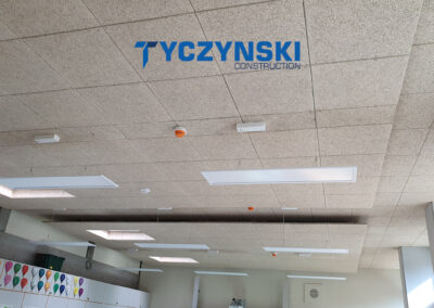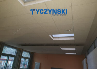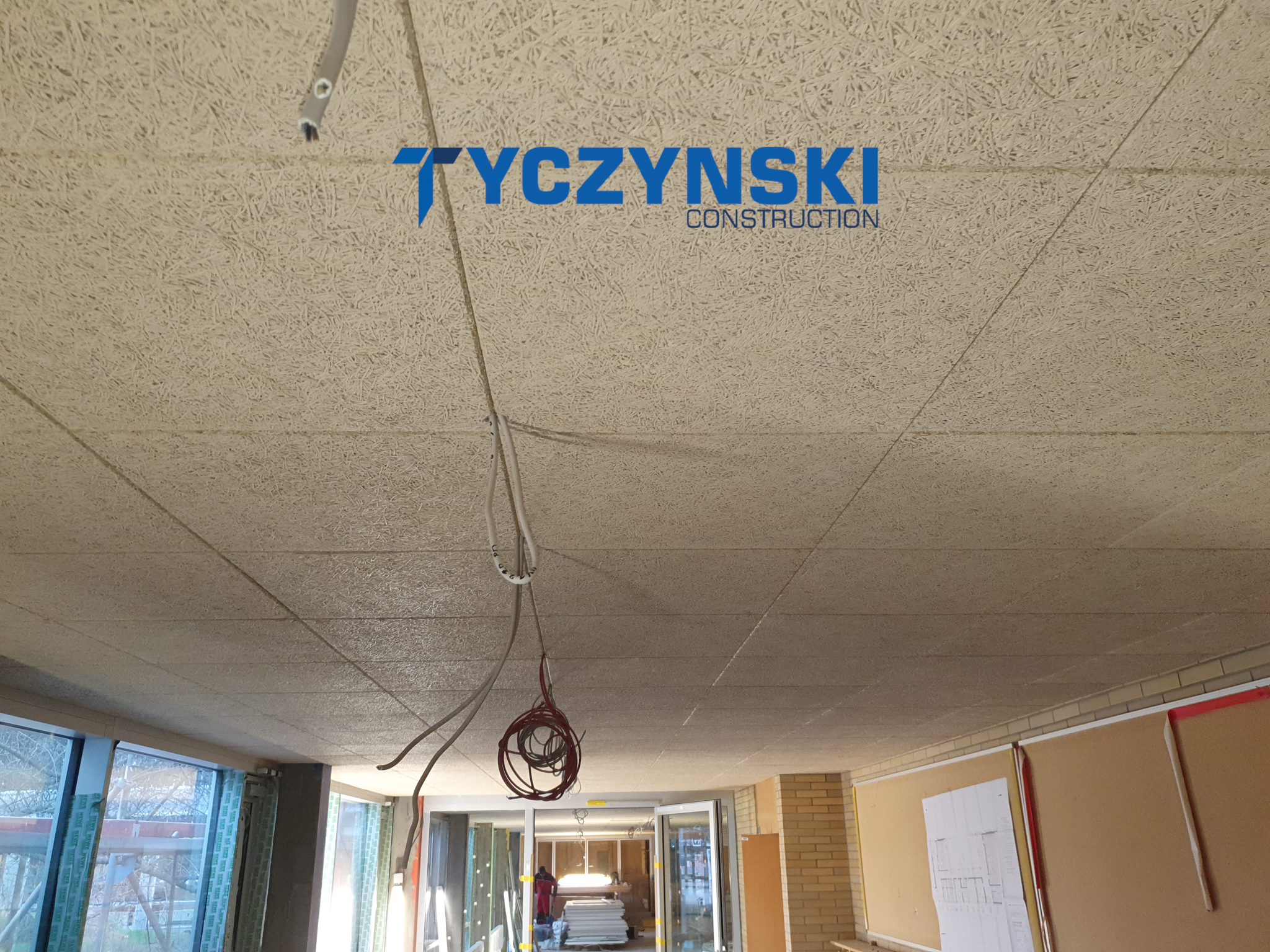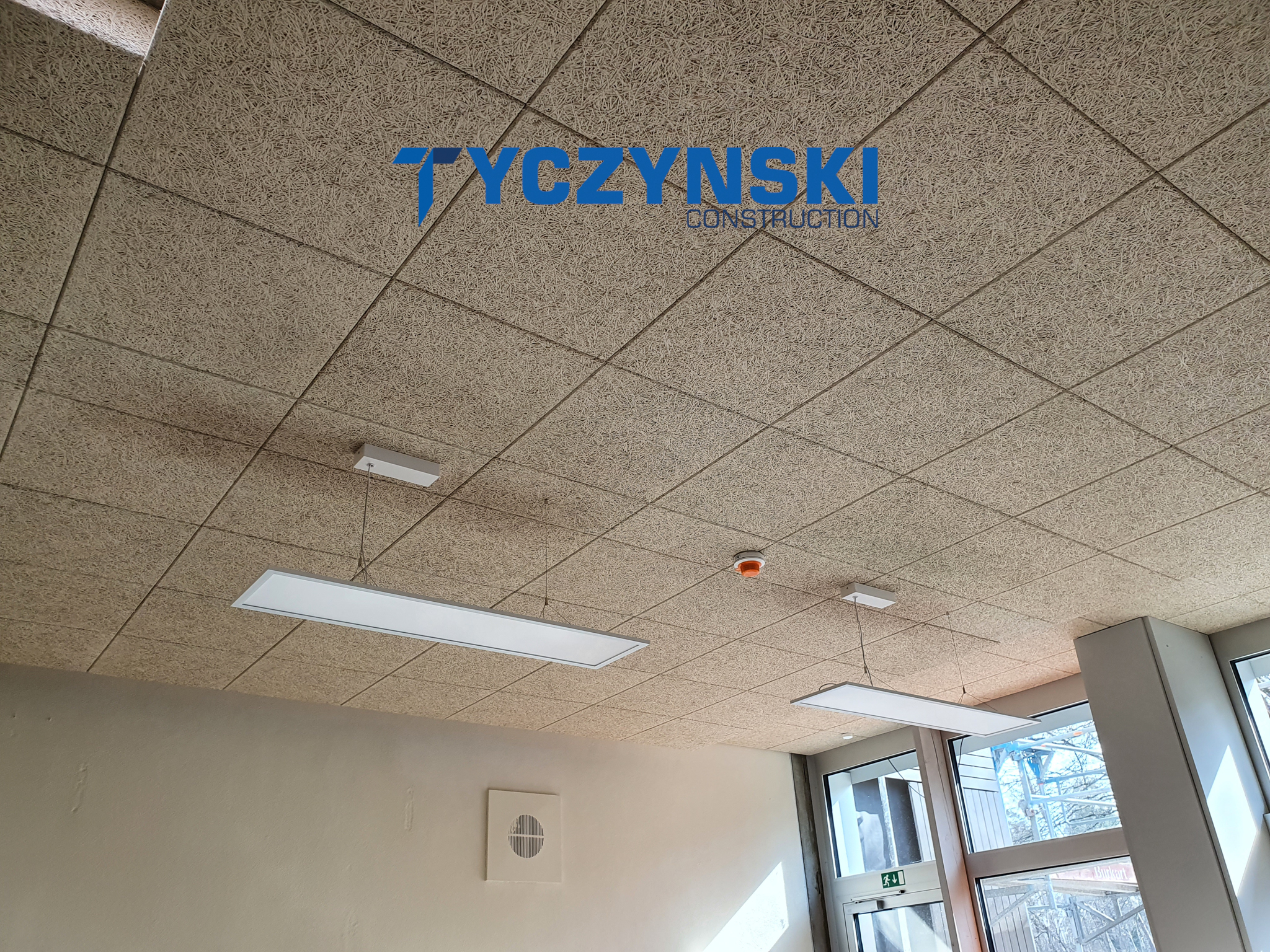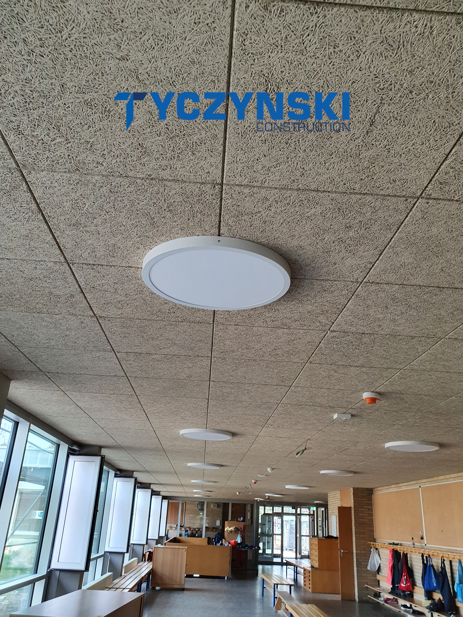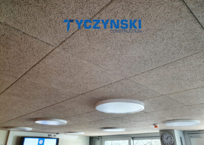 Erster Bauabschnitt in der Europäische Schule ist schon fertig. Wir haben gemacht eine sehr schöne Decke. Haardesign Platte mit Unterkonstruktion und Schalldämmung.