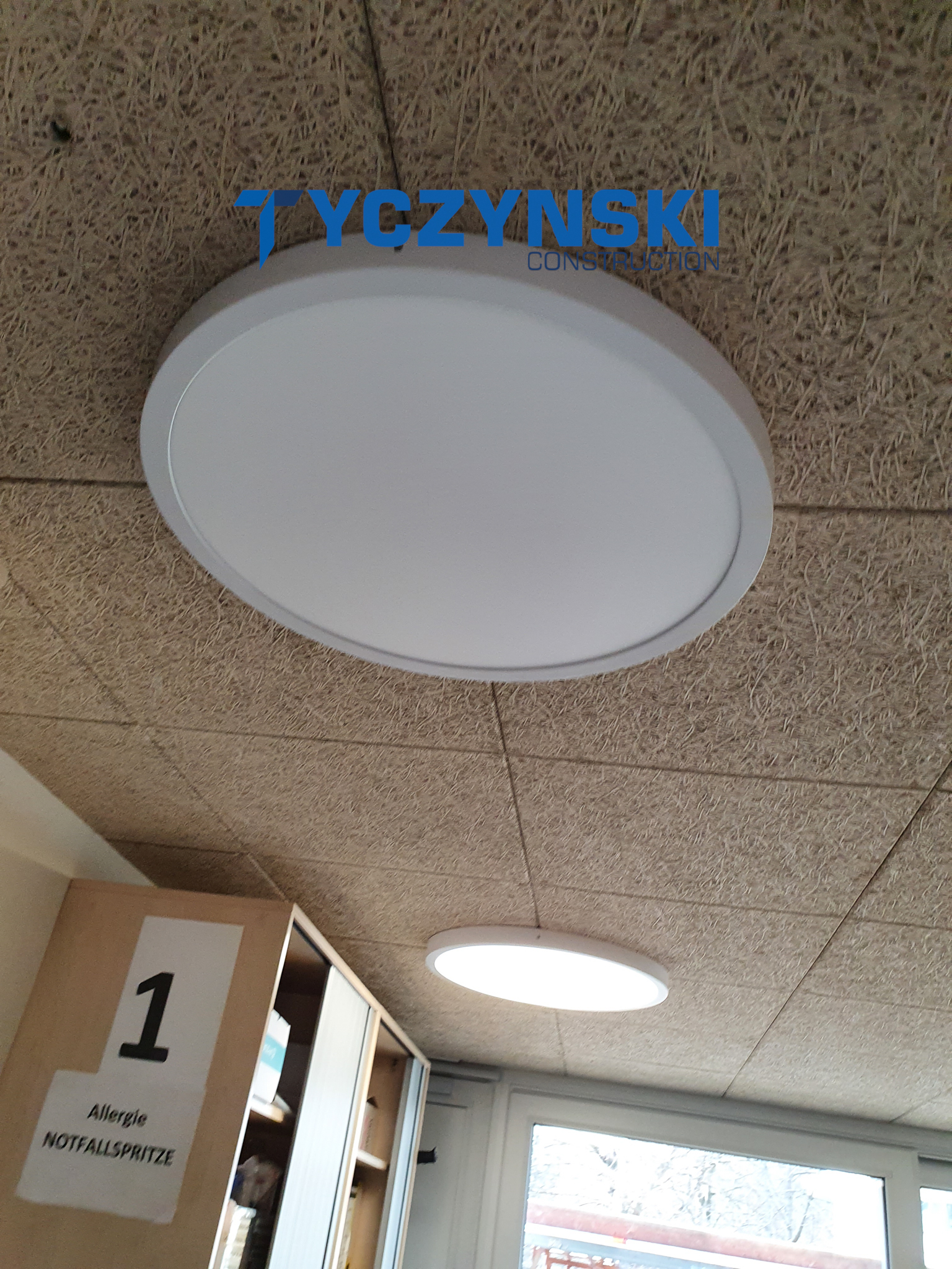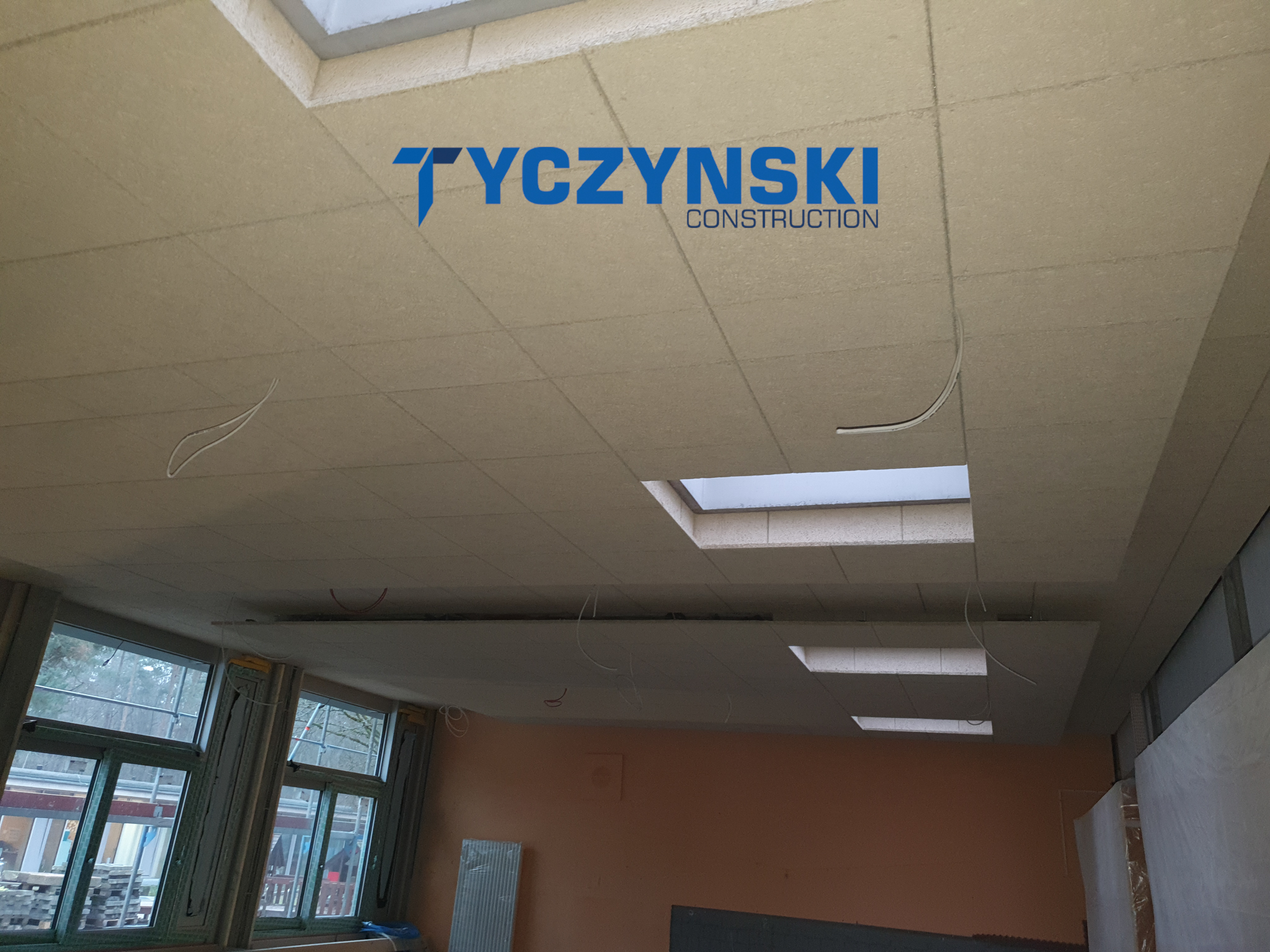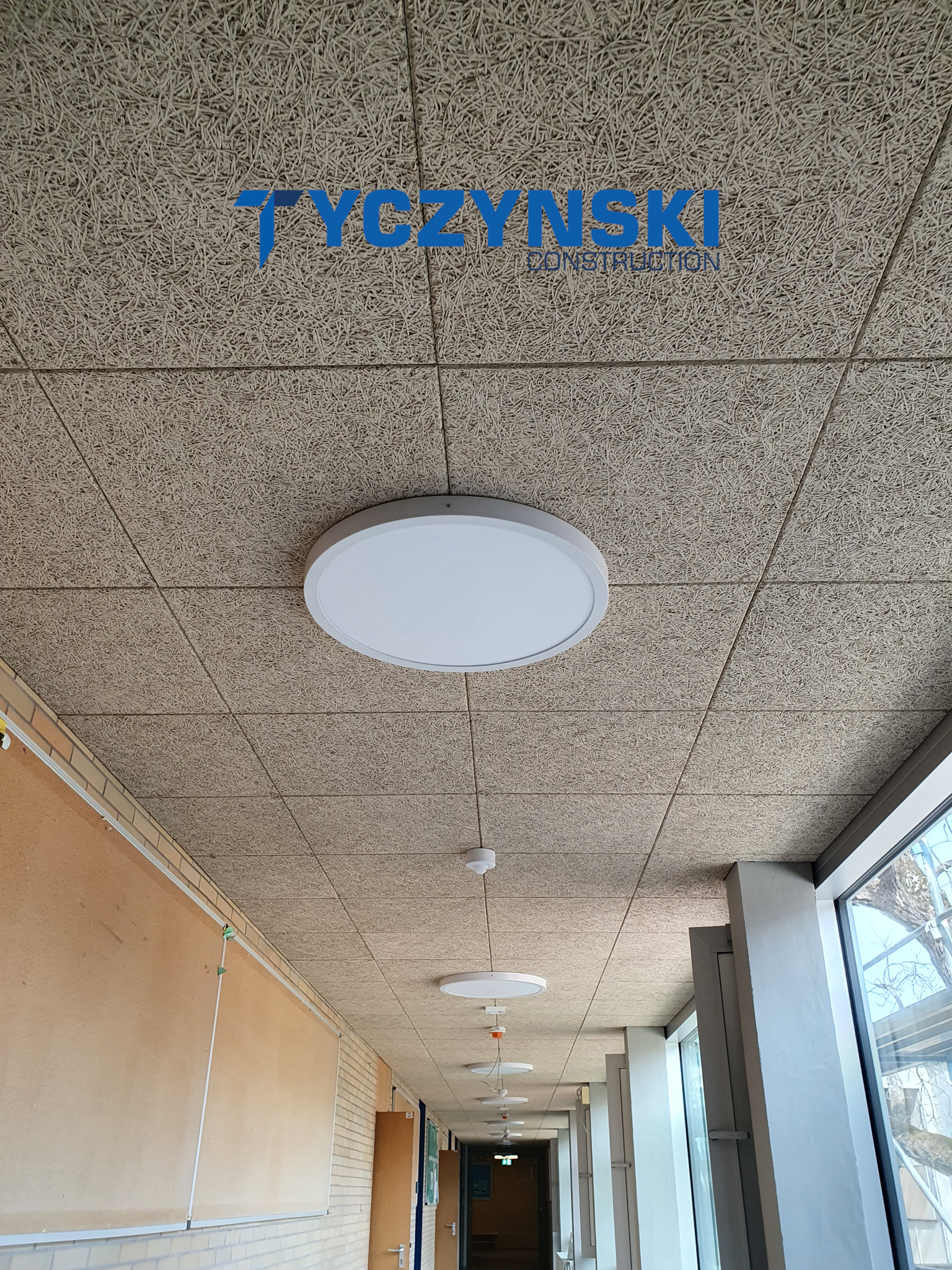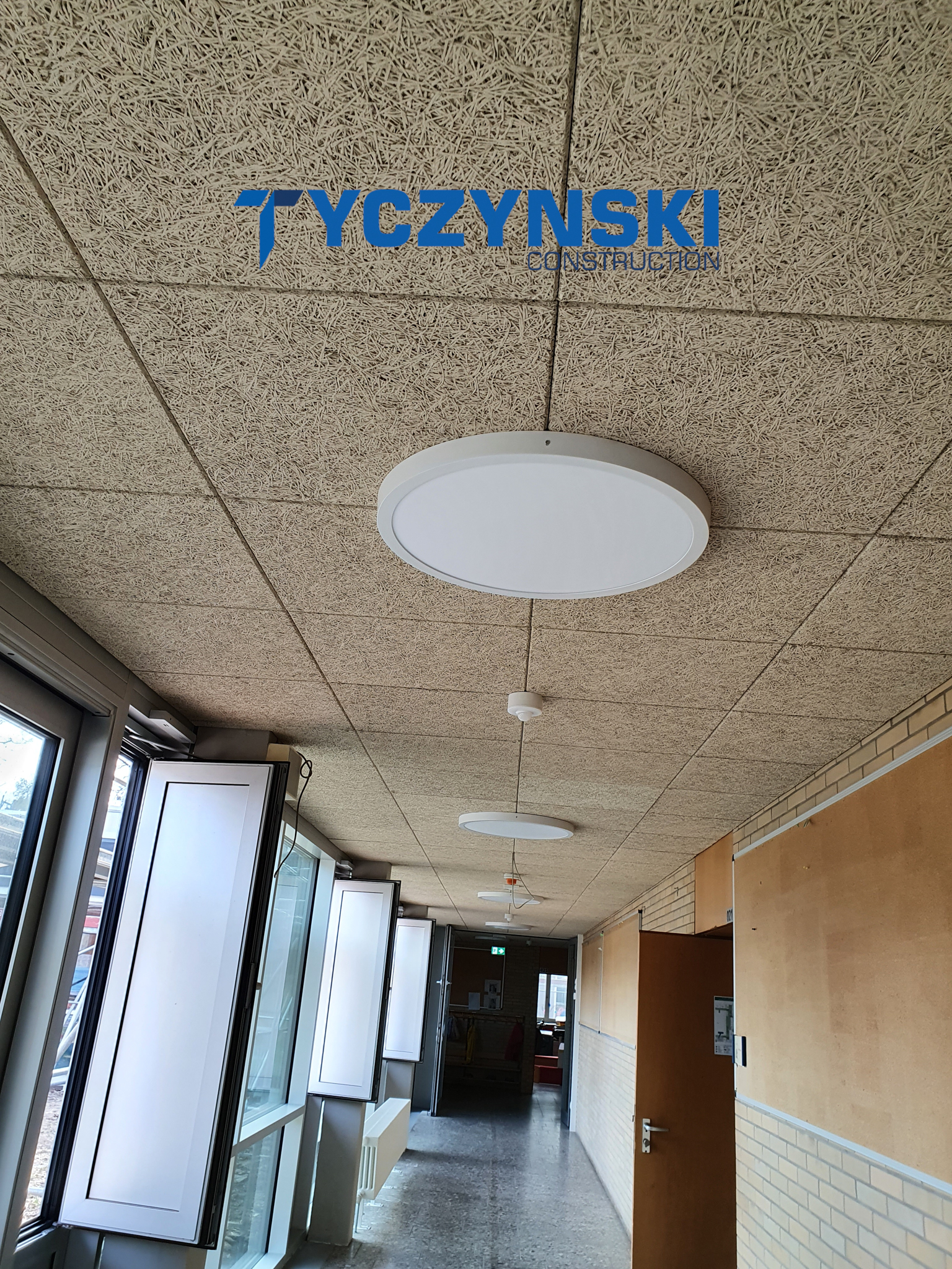 Erster Bauabschnitt in der Europäische Schule ist schon fertig. Wir haben gemacht eine sehr schöne Decke. Haardesign Platte mit Unterkonstruktion und Schalldämmung.