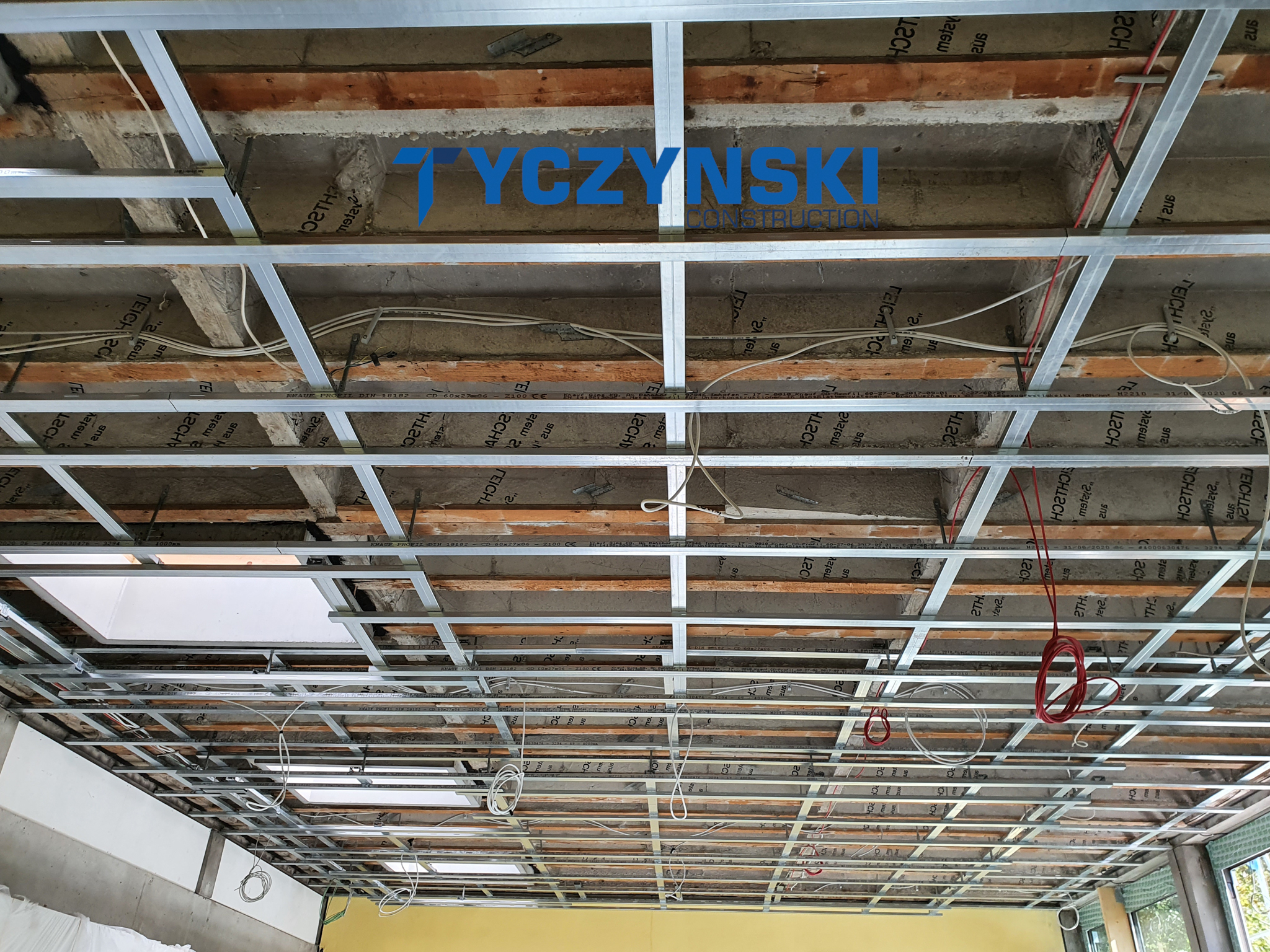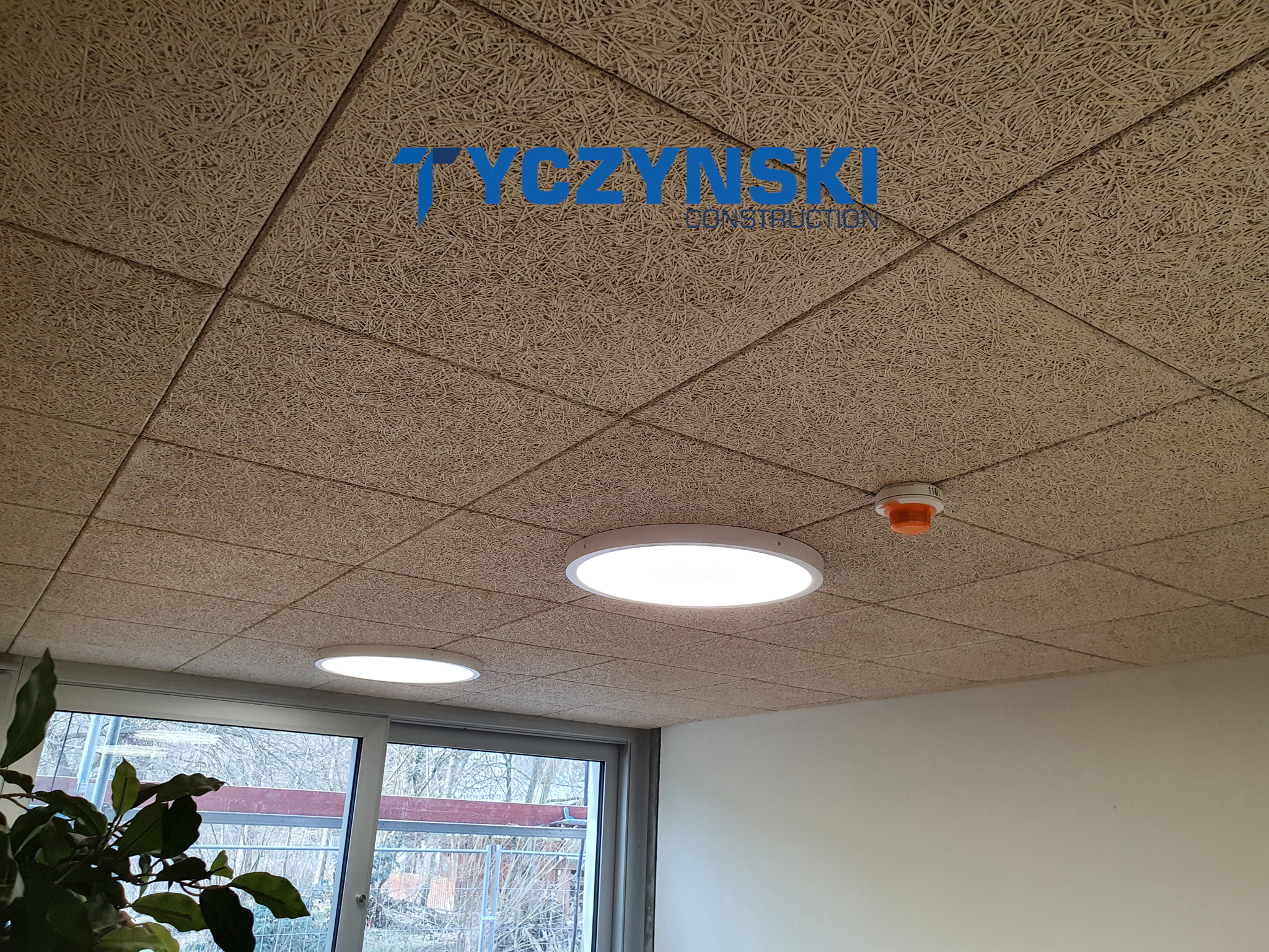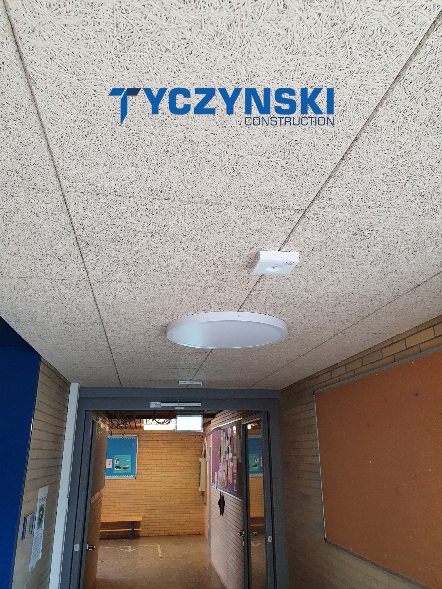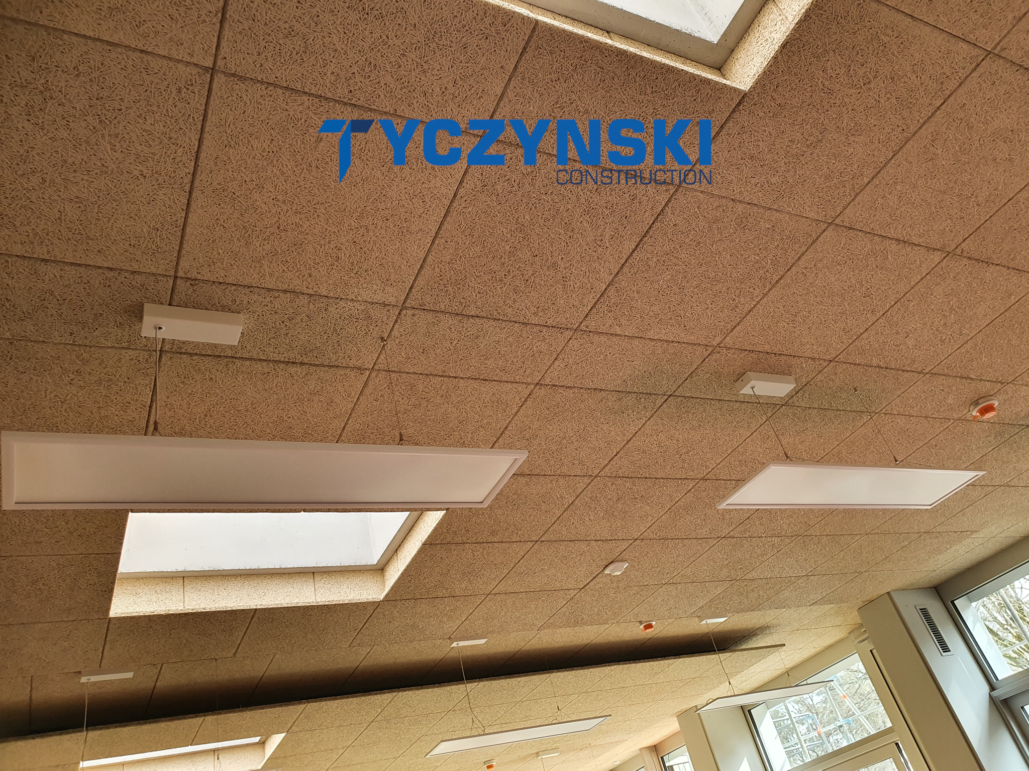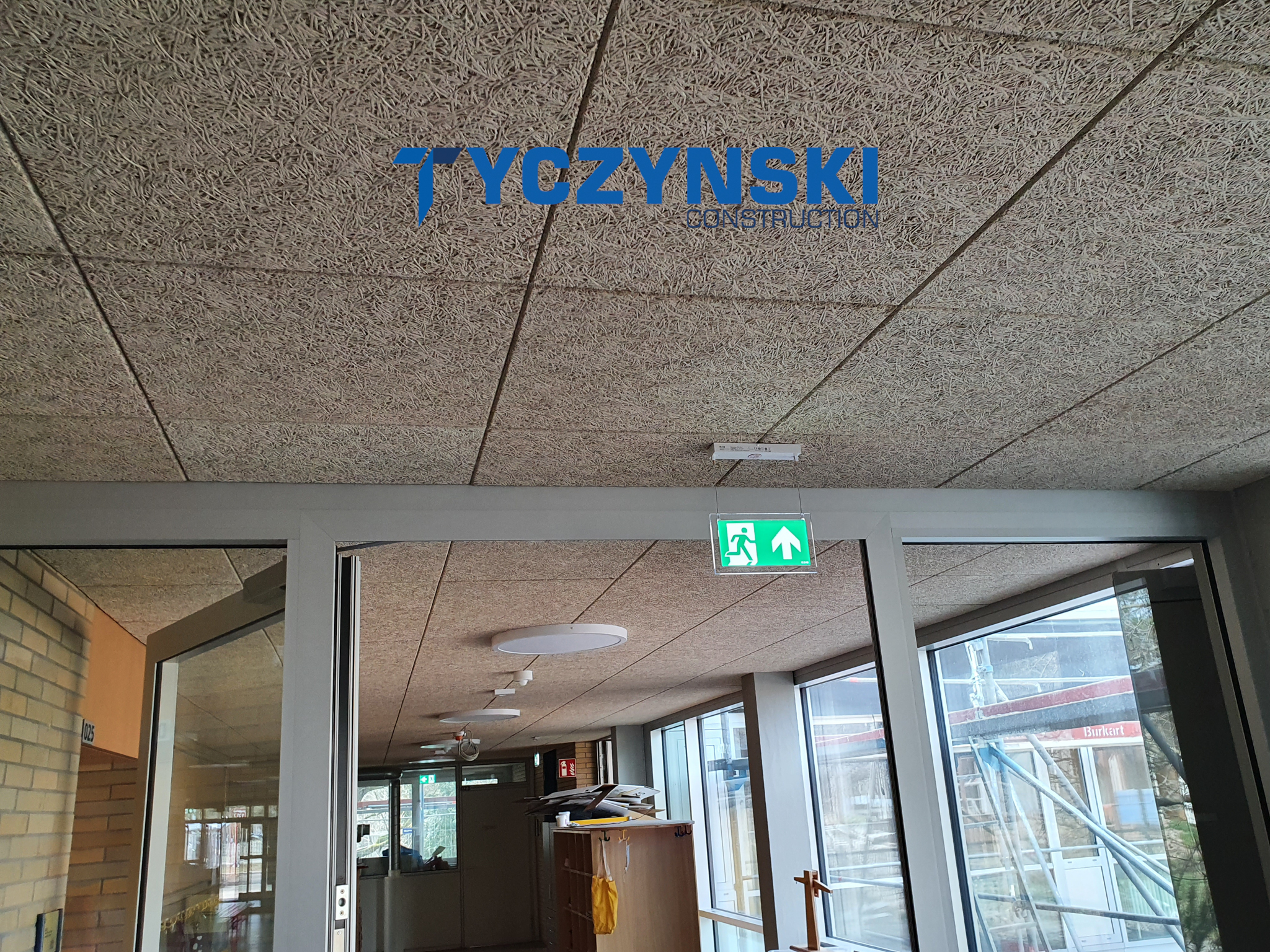Erster Bauabschnitt in der Europäische Schule ist schon fertig. Wir haben gemacht eine sehr schöne Decke. Haardesign Platte mit Unterkonstruktion und Schalldämmung.
