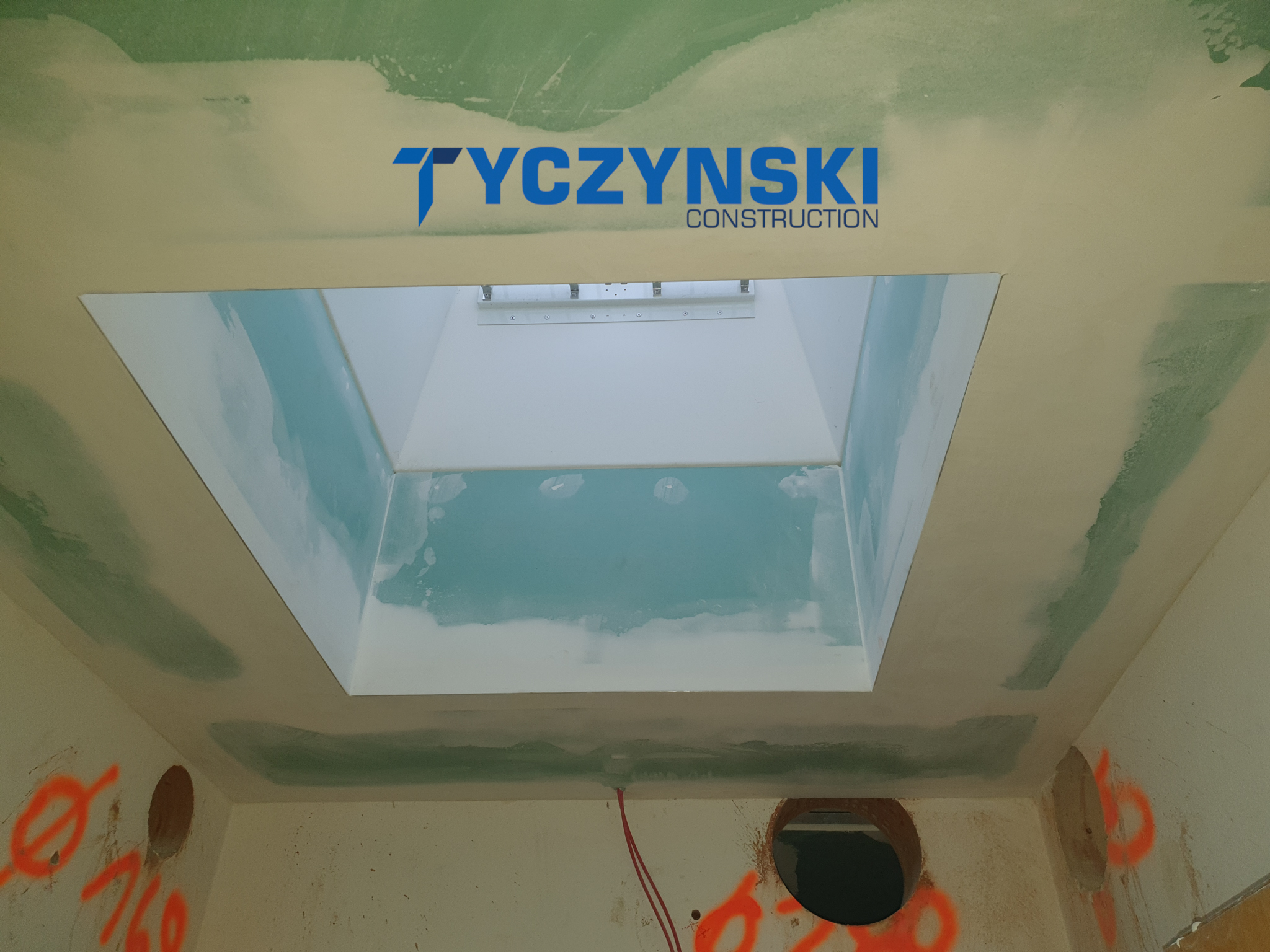 Badezimmersanierung:» Abriss » Fenster Umtausch » Neue Sanitärleitungen » Neue Elektroleitung » Bodenbeleuchtung » Wände und Decken verputzen » Gepresste Sendsteinfliesen » Beleuchtung