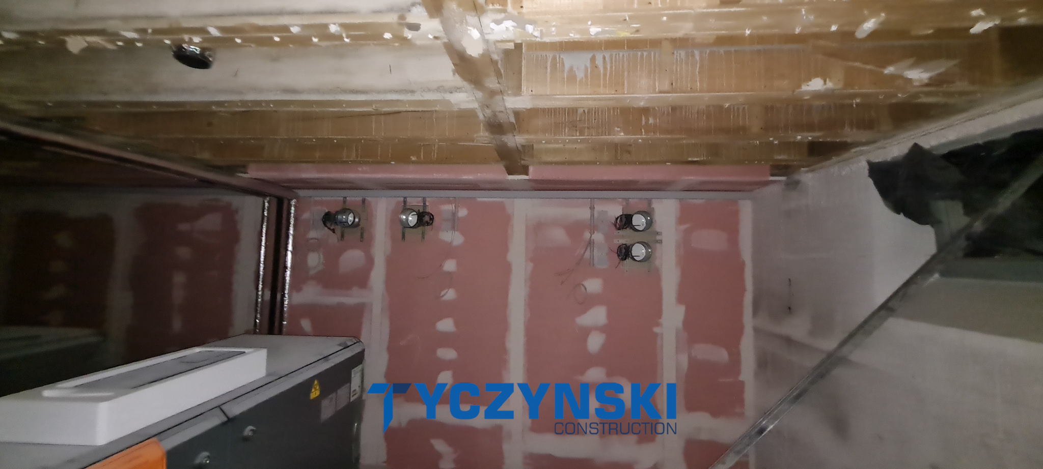 Badezimmersanierung:» Abriss » Fenster Umtausch » Neue Sanitärleitungen » Neue Elektroleitung » Bodenbeleuchtung » Wände und Decken verputzen » Gepresste Sendsteinfliesen » Beleuchtung