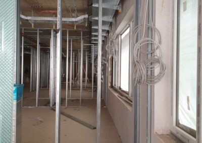 Umfassende Trockenbauarbeiten im Krankenhaus in Völklingen. Wir haben Wände und Decken installiert, wobei wir auf die richtige Akustik, Funktionalität und den Brandschutz geachtet haben.